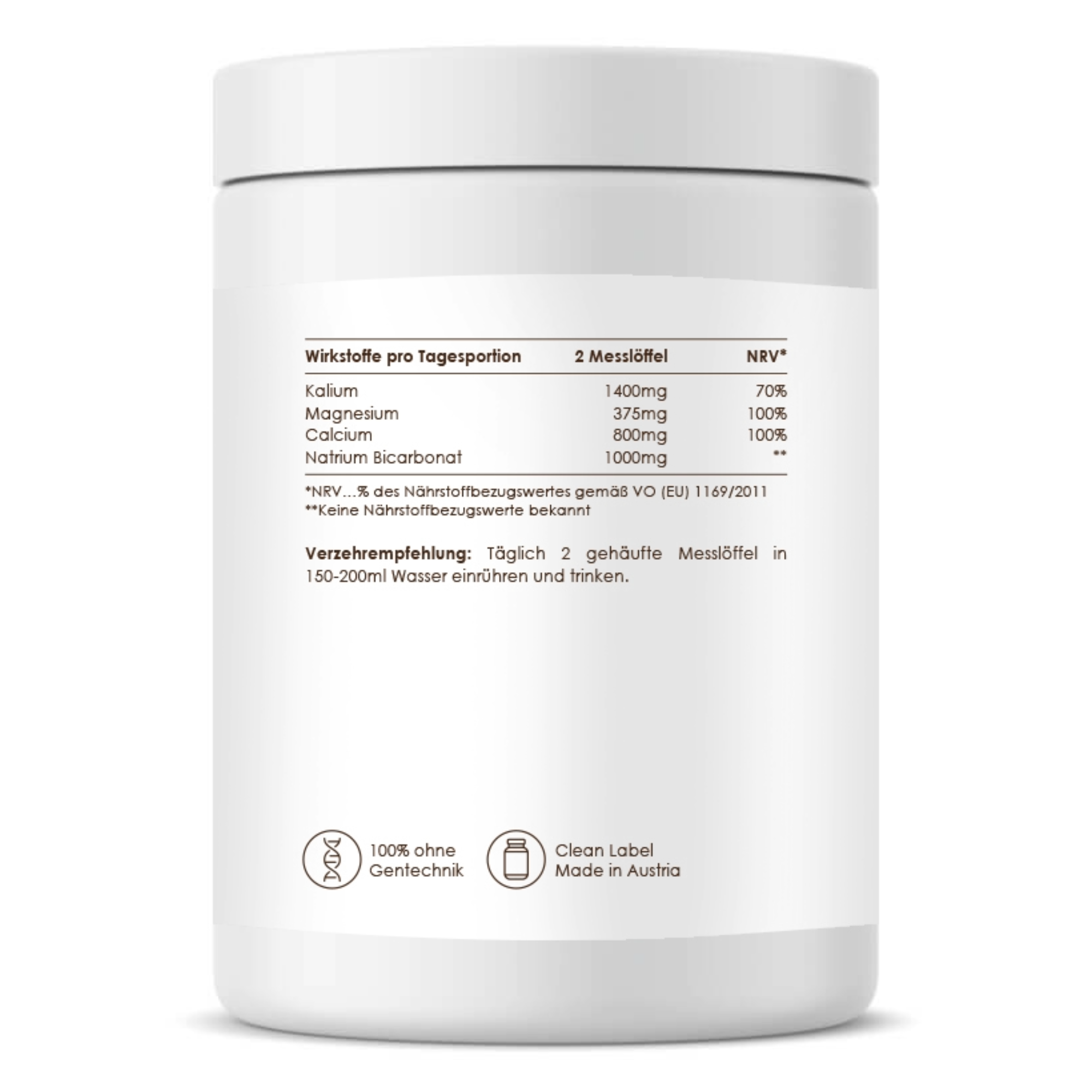 Magnesium and Calcium are present in high dosages (100% NRV). Magnesium acts as the "manager" for energy and nerves, while Potassium and Calcium are essential for normal muscle function. The powder dissolves easily in water – ideal as a daily ritual.